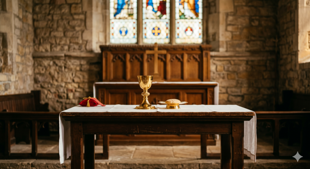 Eucaristia, Sacrifício e Participação na Tradição Anglicana Você já deve ter vivido esse momento. Está sentado num banco de madeira. O hino acabou. Alguém à sua frente está partindo pão…